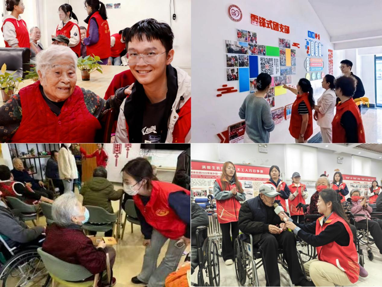 在暖心助老服务领域,各学院聚焦老年群体需求,传递温情与关怀。材料学院依托“趣味科普角”品牌在汇康源老年护理院常态化开展“陪伴夕阳”行动,通过为老人陪护、整理内务及节日特色活动缓解老人孤独感;中德工程学院针“青年实干家”团队对高龄、独居老人推出“智慧助老+温情陪伴”服务,破解数字鸿沟与情感孤独难题;数理学院“雷锋式”团支部则通过“备餐-送餐-陪餐”全流程服务,守护特殊困难老人“舌尖温暖”;高密校区依托“志愿特教中心”特色品牌与西关德邻社区养老服务中心联动,以生日仪式、趣味游戏等实现老少精神同频共振。