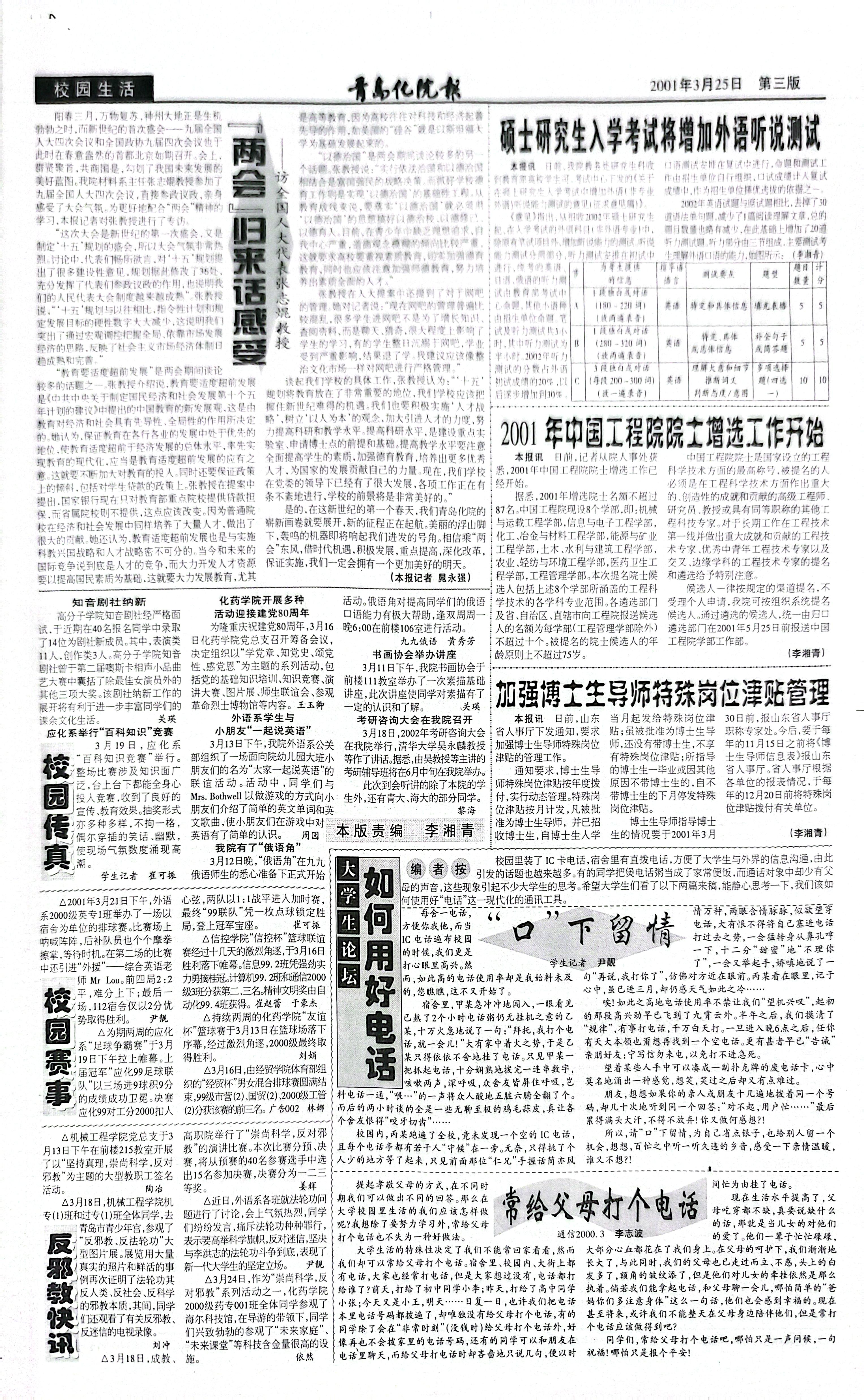 当前位置: 首页 >> 往期浏览 >> 2001年3月25日第283期