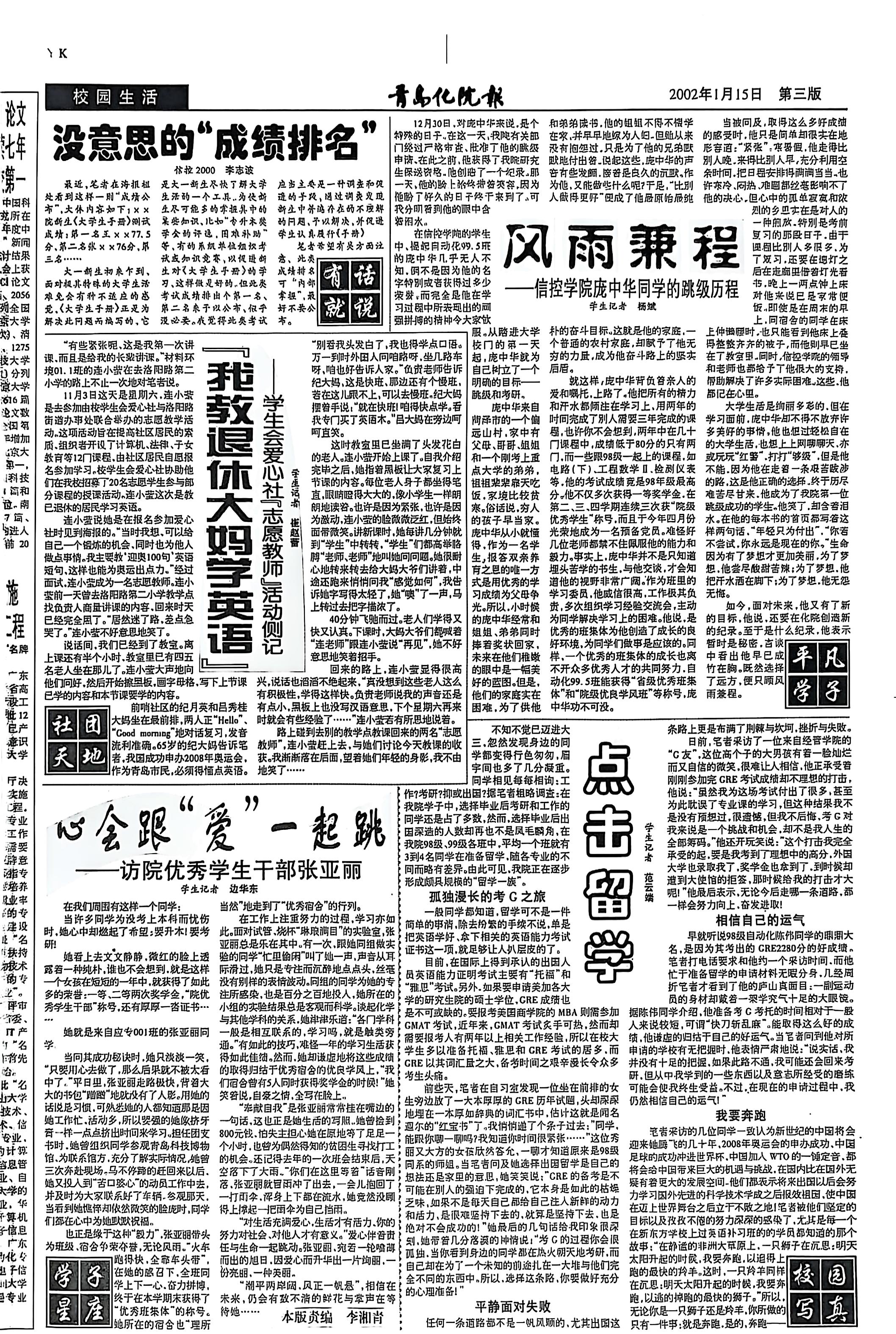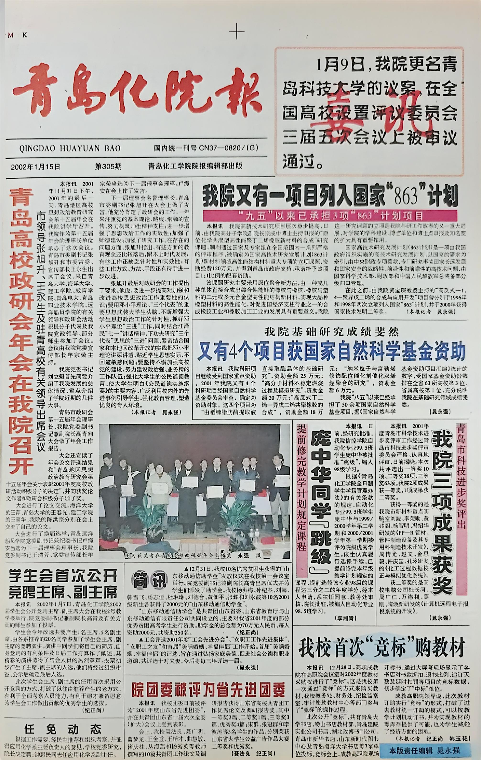 当前位置: 首页 >> 往期浏览 >> 2002年1月15日第305期